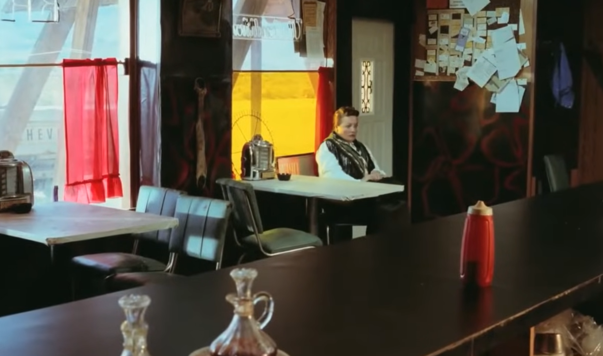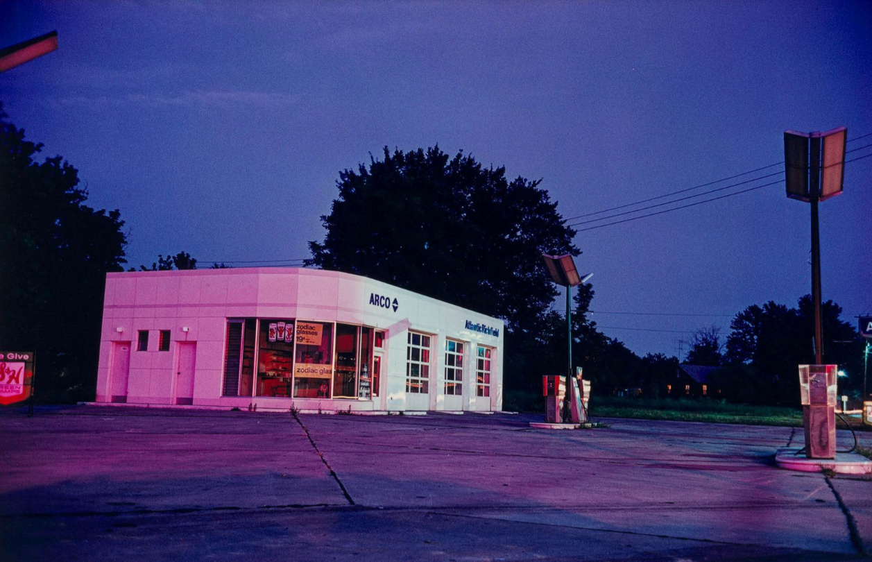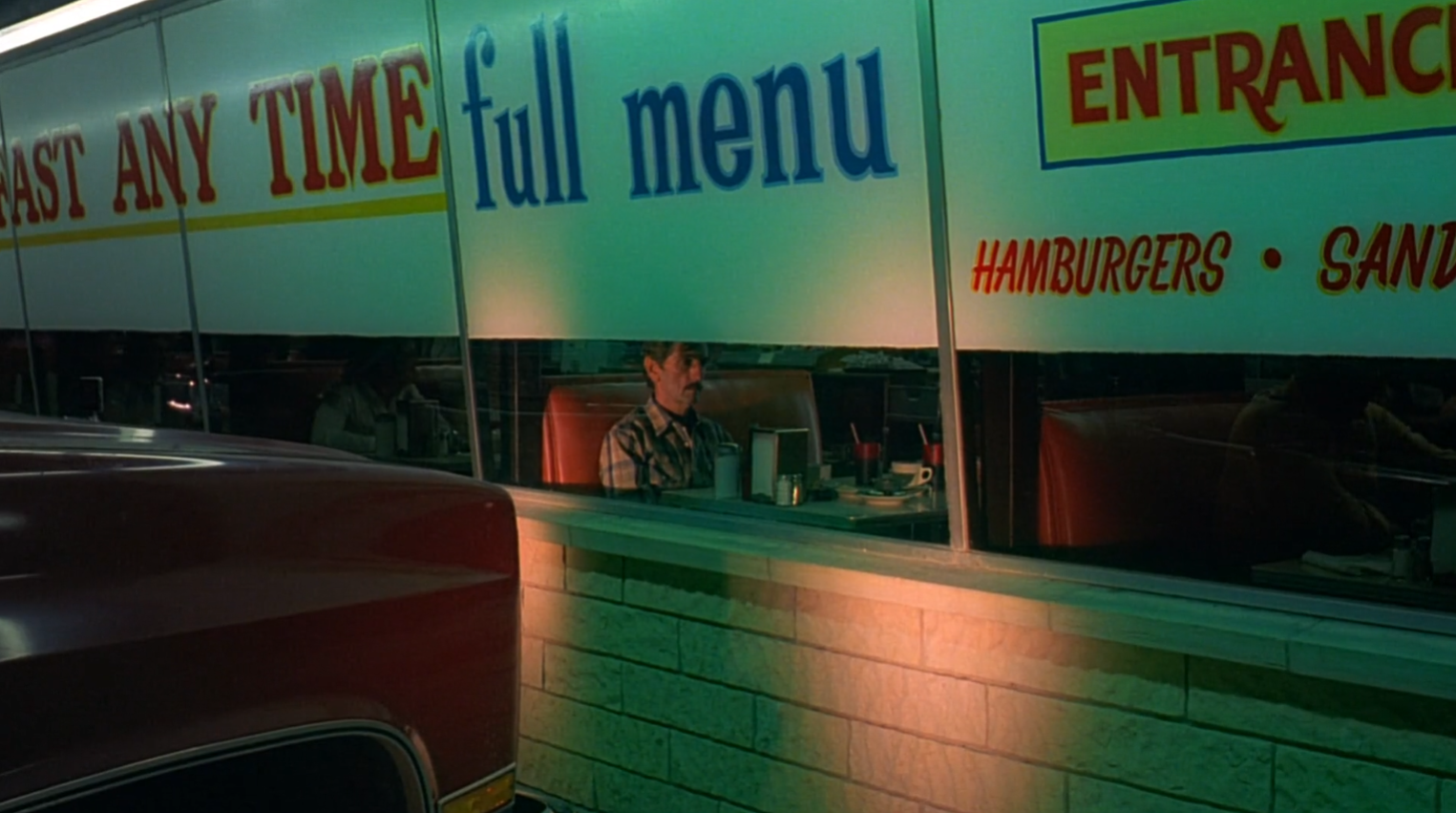 If Hopper gives these films their architecture of loneliness, Eggleston gives them their chromatic skin: the sodium‑yellow cafés, neon‑soaked motels and sun‑blasted parking lots that turn low‑rent roadside America into something strangely luminous and haunted.
