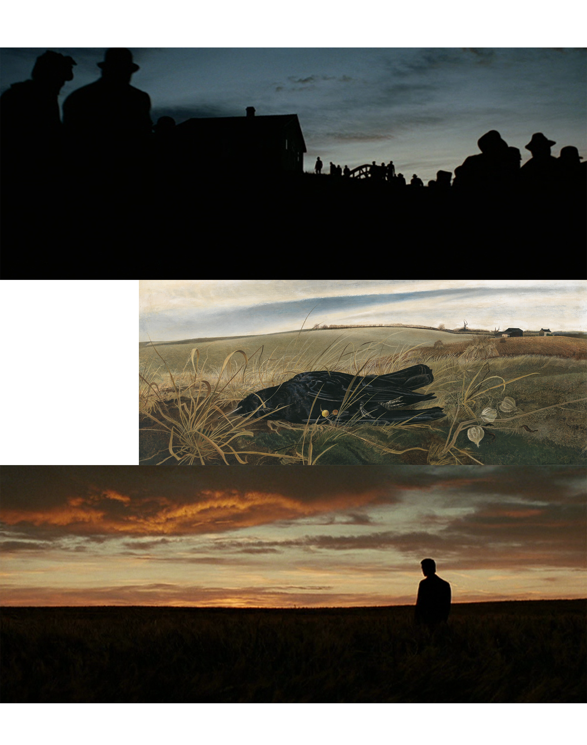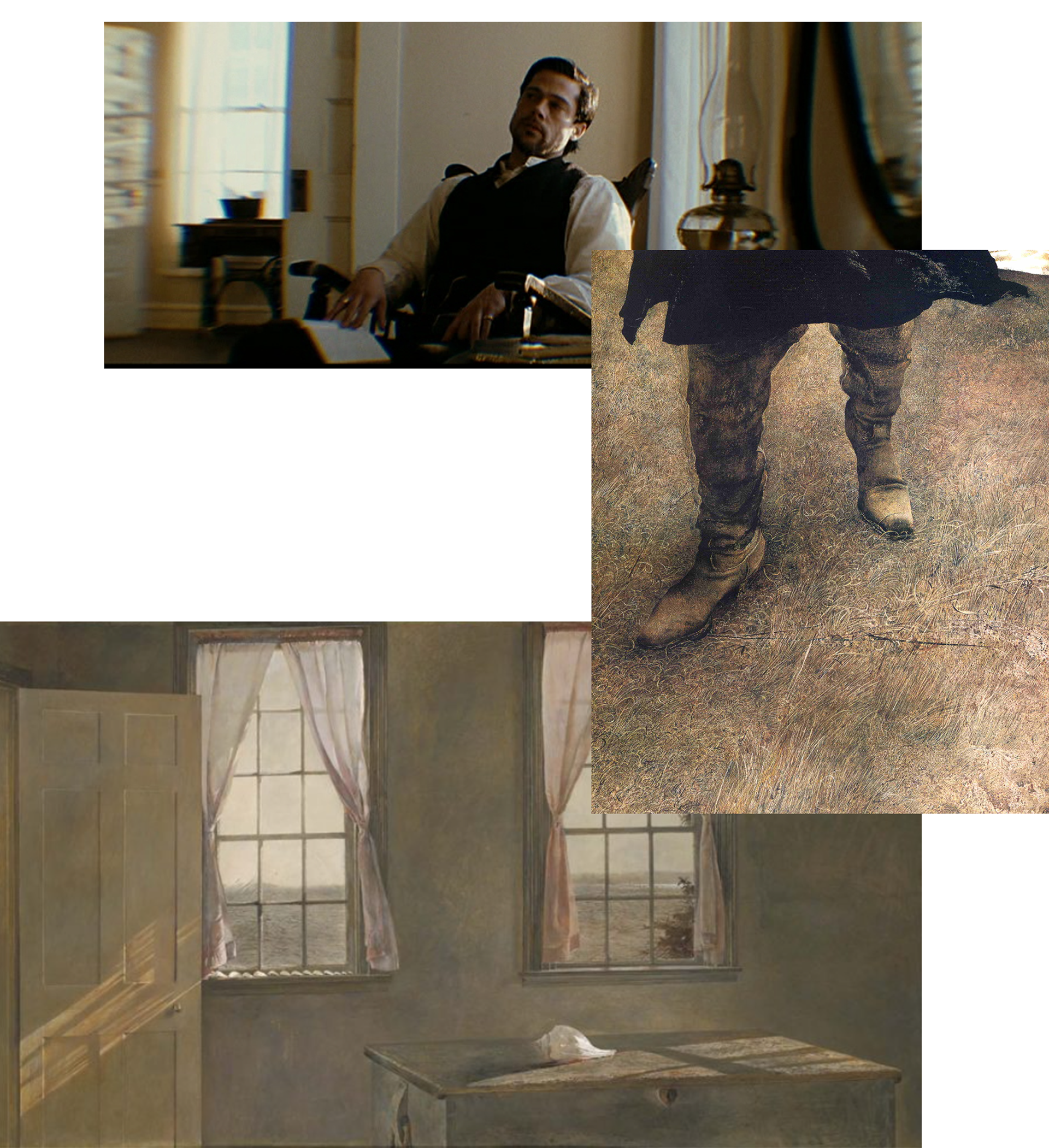 Classic western prairies, once glorified for frontier freedom, are drained of heroism, full of low skies and pale grass, like Wyeth’s paintings. Every frame feels like one long funeral for a myth. A ghost of a man.