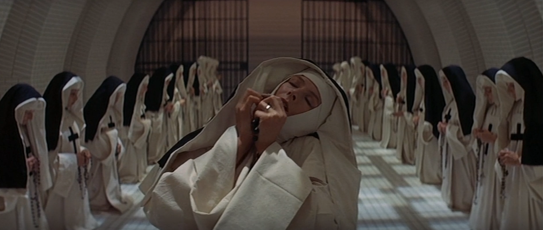 The inferno of Ken Russell's "The Devils" captures a 'sinful perfection' that is almost unbearable. Here, the supposed madness of possession, fueled by repression, finds a horrifying yet undeniable beauty in its photography and production design. The exquisite composition and theatricality don't merely depict transgression; they elevate it into a visual paradox, affirming the explosive power of desires the church sought to deny.